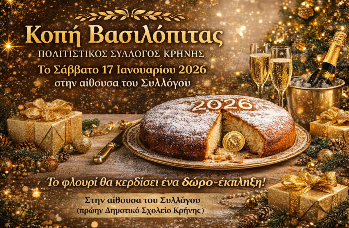 Κοπή βασιλόπιτας από τον Πολιτιστικό Σύλλογο Κρήνης – Το Σάββατο 17 Ιανουαρίου 2026 στην αίθουσα του Συλλόγου