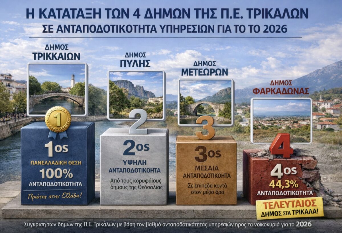 Τελευταίος στην Π.Ε. Τρικάλων ο Δήμος Φαρκαδόνας στην ανταποδοτικότητα των υπηρεσιών προς τα νοικοκυριά – Οι δημότες πληρώνουν περισσότερα σε σχέση με την αξία των υπηρεσιών που λαμβάνουν