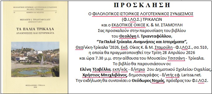 Τελείται την Κυριακή 19 – 4 – 2026 στον Ιερό Ναό Αγίου Αθανασίου Λογγακίου Τρικάλων, 40ήμερο μνημόσυνο για την ανάπαυση της ψυχής της Αργυρούς Μιχαλάκη, η οποία τόσο άδικα...