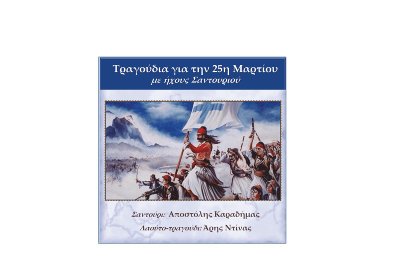 Με την ευκαιρία της γιορτής της 25ης Μαρτίου, ο Αποστόλης Καραδήμας, κυκλοφόρησε σε DVD και σε CD, 11 γνωστά ηρωικά...