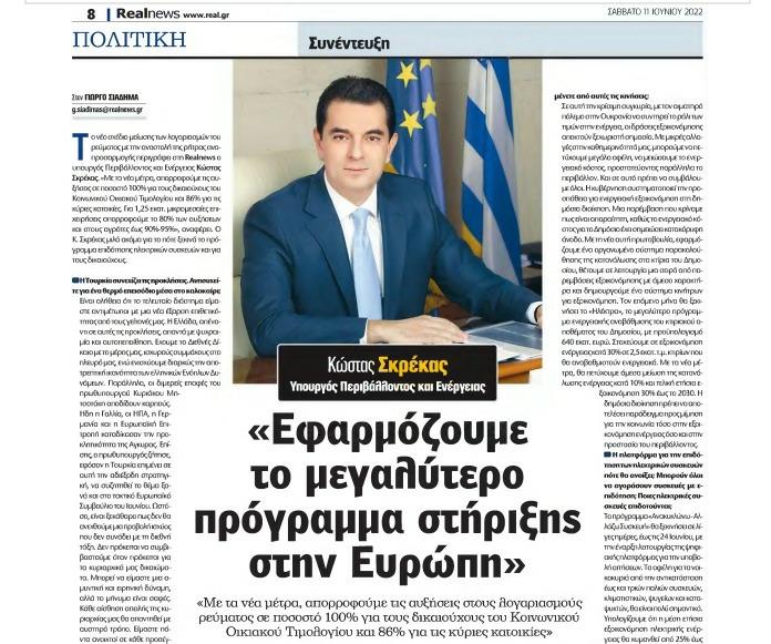 Ο Υπουργός Περιβάλλοντος και Ενέργειας, Κώστας Σκρέκας, παρουσίασεσήμερα το σχέδιο της Κυβέρνησης για την εξοικονόμηση ενέργειας στοΔημόσιο, μαζί με τον...
