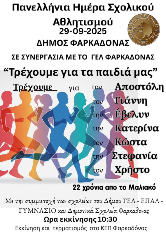 Ο Δήμος Φαρκαδόνας σε συνεργασία με το ΓΕΛ Φαρκαδόνας διοργανώνει τη Δευτέρα 29 Σεπτεμβρίου 2025 εκδήλωση στο πλαίσιο της Πανελλήνιας...