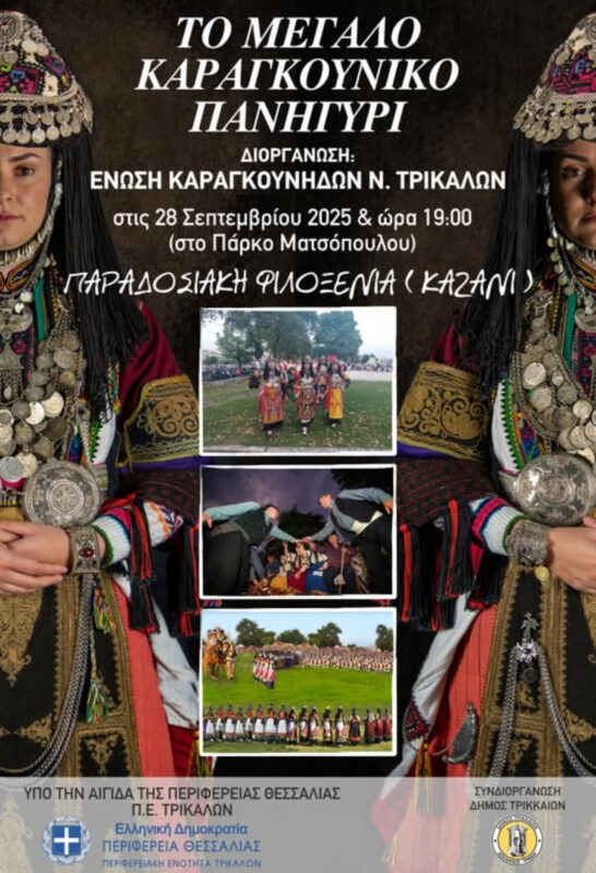 Την Κυριακή, 28 Σεπτεμβρίου 2025, στο Πάρκο του Μύλου Ματσόπουλου στα Τρίκαλα, στις 19:00, η Ένωση Καραγκούνηδων Ν. Τρικάλων (Καραγκούνηδες...