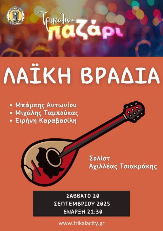 Τα Τρίκαλα αποχαιρετούν για φέτος το Παζάρι, με λαϊκή βραδιά. Οι εκδηλώσεις του Δήμου Τρικκαίων ολοκληρώνονται την τελευταία ημέρα διεξαγωγής...