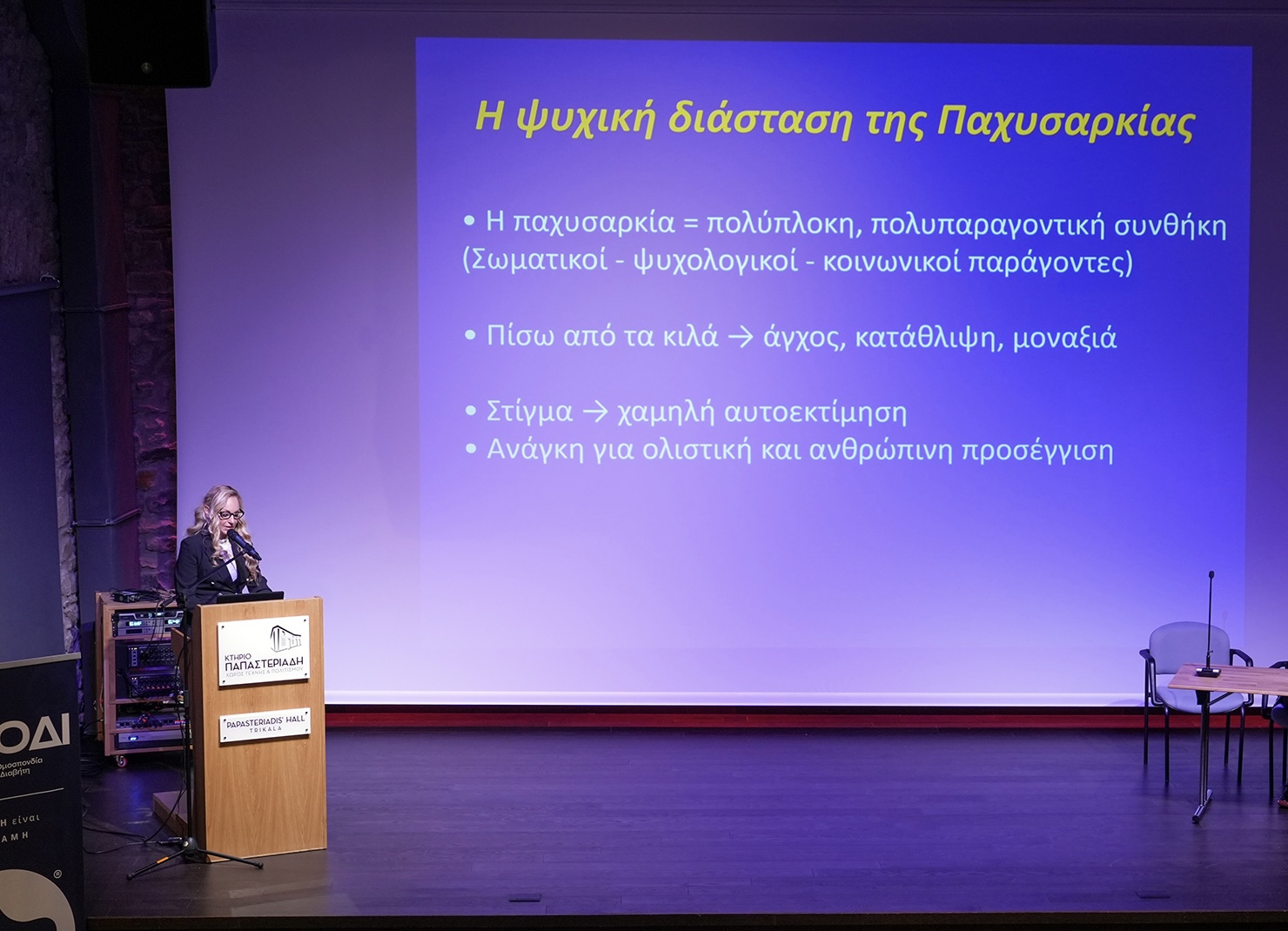 «Η αντιμετώπιση της παχυσαρκίας πρέπει να ξεκινά από την ψυχή και να βασίζεται στην κατανόηση, χωρίς επικρίσεις και στίγμα», σημείωσε χαρακτηριστικά, προσθέτοντας ότι «κάθε άνθρωπος φέρει τη δική του μοναδική ιστορία, τις δικές του πληγές και ανάγκες». Η φροντίδα, όπως υπογράμμισε, πρέπει να είναι ολιστική και να βασίζεται στη συνεργασία Ψυχολόγων, Ιατρών και Διαιτολόγων.