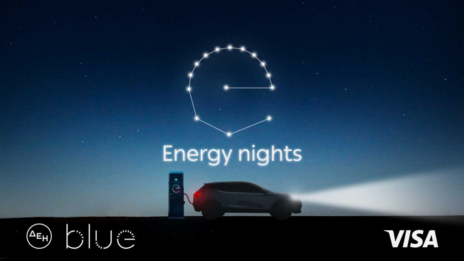 Με την ενέργεια «Energy nights» η ΔΕΗ blue επιβεβαιώνει την δέσμευση της να κάνει την ηλεκτροκίνηση πιο προσιτή, ανταποδοτική και βιώσιμη, προσφέροντας κορυφαίες λύσεις φόρτισης μέσα από το μεγαλύτερο δίκτυο δημόσιας φόρτισης στην Ελλάδα.