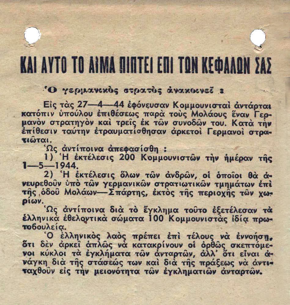 Δημοσίευμα εφημερίδας για την εκτέλεση των 200 της Καισαριανής