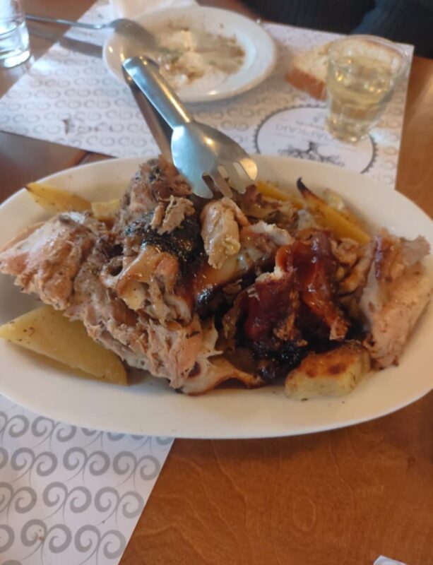Ανάμεσα τους, η επιχειρηματίας της περιοχής , ιδιοκτήτρια του «Σούπερ Μάρκετ Γάτσιου» στη Μουριά, Μαριάννα Γάτσιου, η οποία γεύτηκε μαζί με τους δικούς της ανθρώπους, γουρουνόπουλο στη σούβλα!