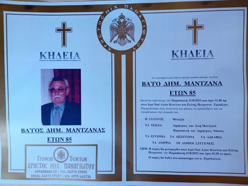 Έφυγε από τη ζωή σε ηλικία 85 ετών ο Βάιος Μαντζανάς από το Πετρωτό