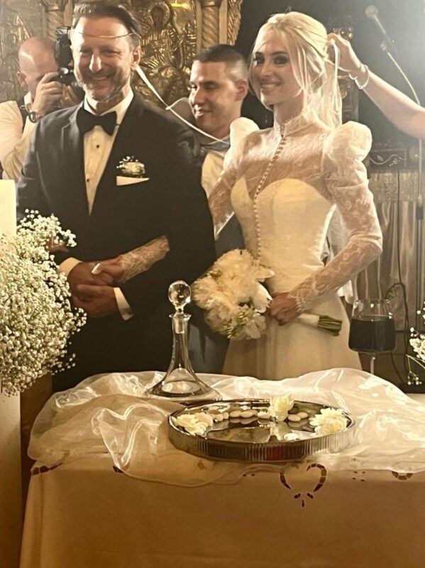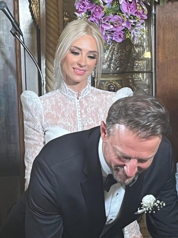 Και μετά ξεκίνησε το γλέντι με τους νιόπαντρους να παραδίδουν μαθήματα χορού, με αποκορύφωμα το χασάπικό που χόρεψαν με τους καλεσμένους τους να τους αποθεώνουν. Διόλου τυχαία επιλογή, αφού όχι μόνο η νύφη Κάτια Μάνου εκτός από δασκάλα πιλάτες είναι και χορεύτρια, αλλά και ο πατέρας της είναι πετυχημένος χοροδιδάσκαλος στην περιοχή των Τρικάλων απ’ όπου κατάγονται τόσο η νύφη, όσο και ο γαμπρός.