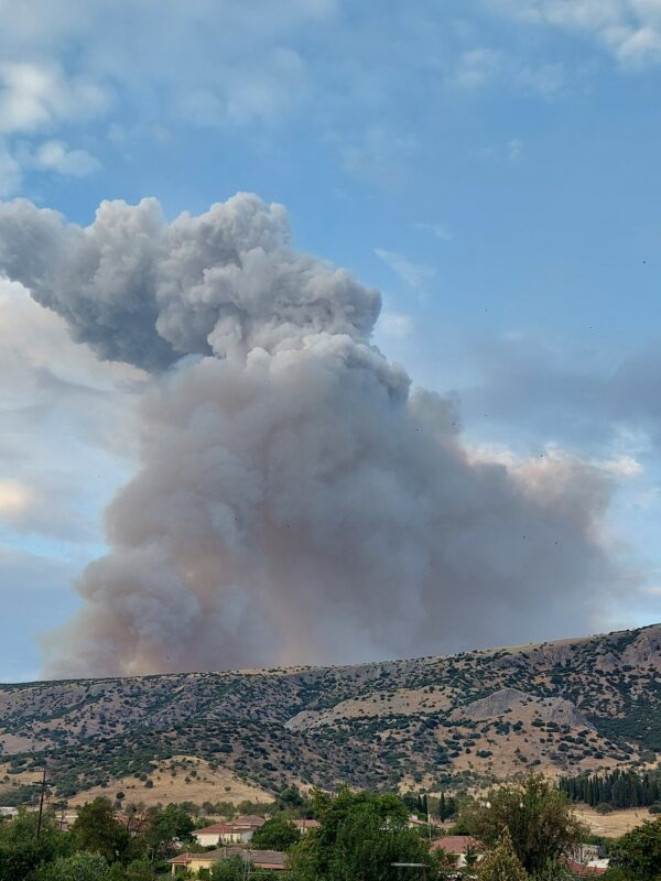 Μεγάλη φωτιά στη θέση «Αμύγδαλο» Τυρνάβου – Απειλεί τις πλαγιές του Ζάρκου