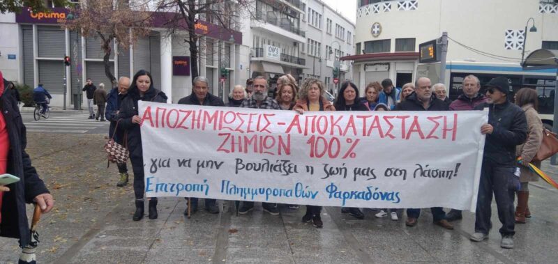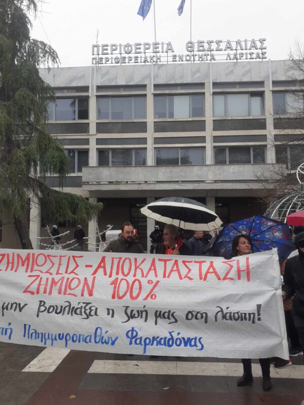 Στην κινητοποίηση συμμετείχαν και δεκάδες πλημμυροπαθείς της περιοχής του Δήμου Φαρκαδόνας που υπέστησαν τεράστιες ζημι΄λες απο τις πλημμυρες.