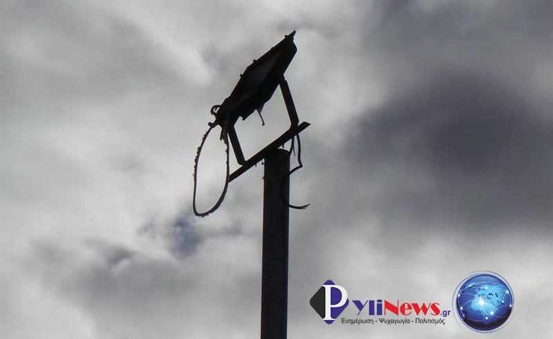 *Στην αρχική φωτό, διακρίνεται ο κεραυνοβολημένος προβολέας.