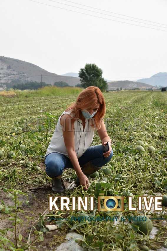 Ο κ. Μιχαλάκης χαρακτήρισε την κατάσταση απογοητευτική καθώς η μανία της φύσης, η ισχυρή χαλαζόπτωση δεν άφησε τίποτα στο πέρασμά της, κατέστρεψε χιλιάδες στρέμματα καλλιεργούμενων εκτάσεων, φυτά τα οποία βρισκόταν στο στάδιο της καρποφορίας, καλαμπόκια, τριφύλλια, μποστανοειδή και σε εξέλιξη οι βαμβακοφυτείες.