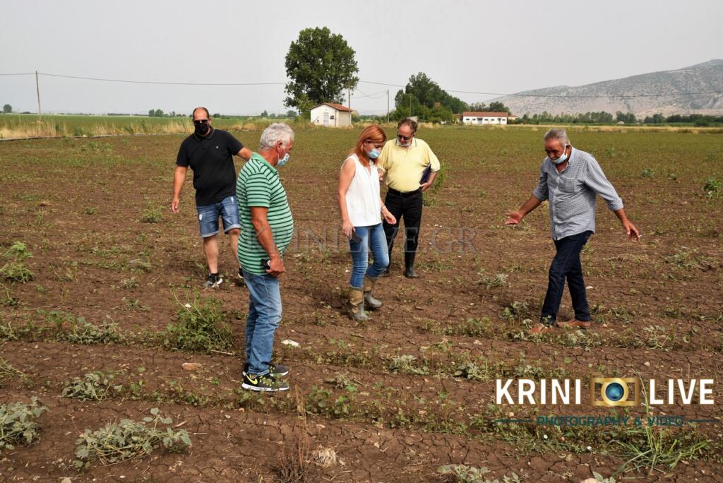 Η αντιπροσωπεία επισκέφτηκε καλλιεργούμενες εκτάσεις στα τέσσερα χωριά της Φαρκαδόνας, αποκομίζοντας μια πρώτη εικόνα γύρω από τις καταστροφές.