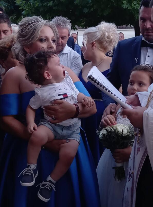 Τη στέψη πραγματοποίησαν ο Θέμης Ράπτης και η Κατερίνα Καρλιάμπα. Λίγο αργότερα οι νονοί χάρισαν στο βρέφος του ζευγαριού το όνομα Ευάγγελος.