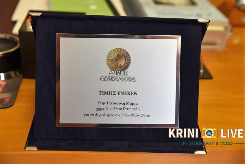 Παράλληλα απένειμε στον δωρητή τιμητική πλακέτα, ως ένα δείγμα της ευχαριστίας από το Δήμο και τους δημότες.