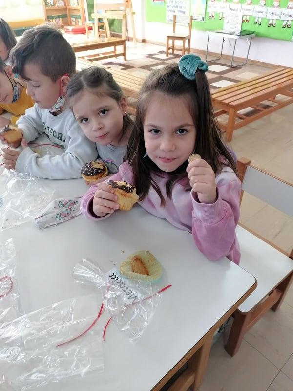 Λίγο πριν την κοπή της πρωτοχρονιάτικης πίτας τους η διευθύντρια κ. Χριστίνα Μπαγιώτη και οι δασκάλες τους φρόντισαν να τους διδάξουν και να τους πληροφορήσουν για το έθιμο της κοπής της βασιλόπιτας που είθισται για το καλωσόρισμα της νέας χρονιάς.