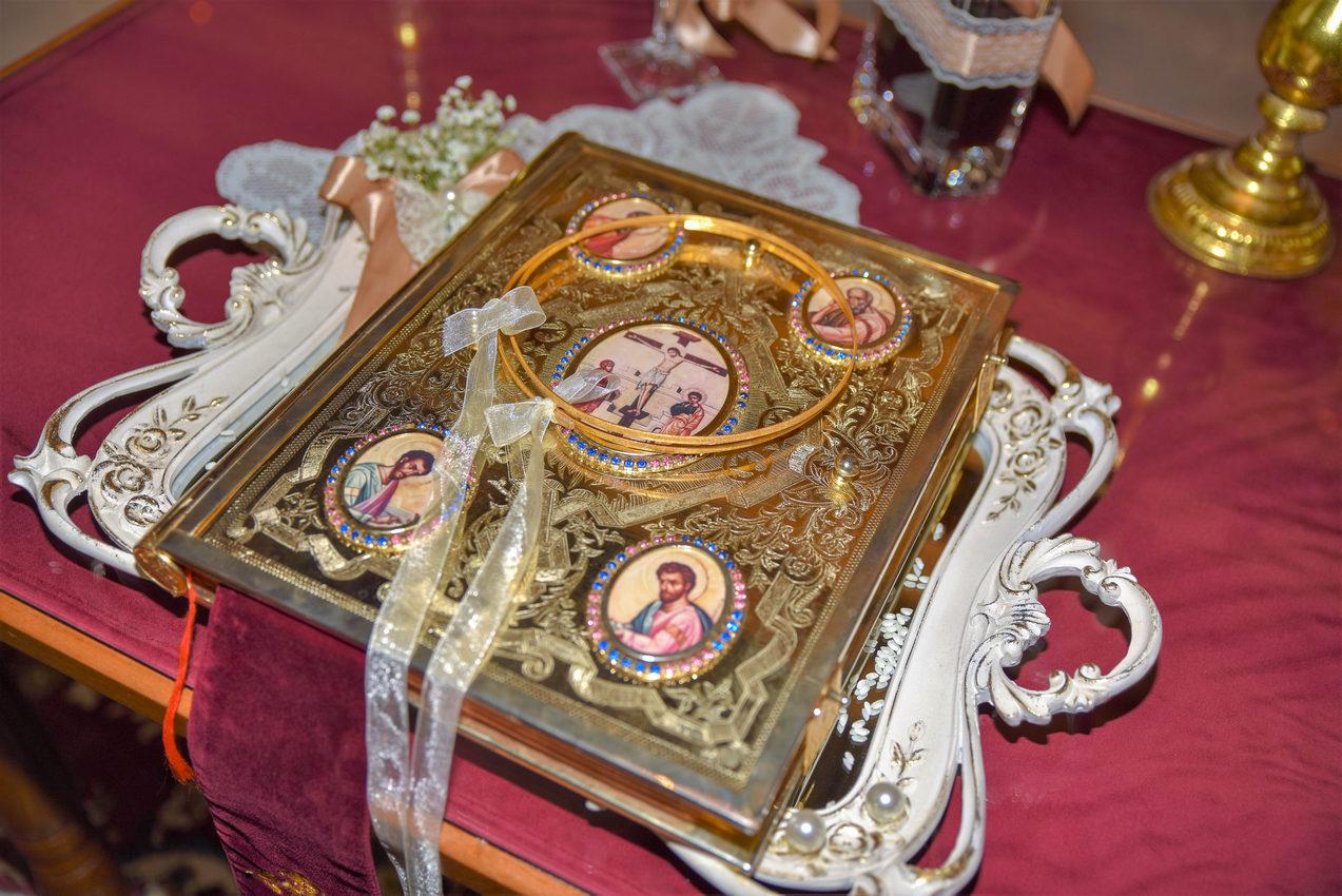 Τη στέψη του νέου ζευγαριού ανέλαβε η Ρούλα Παρδεβέλα, υπεύθυνη του καταστήματος «Νεφέλες» η οποία επιμελήθηκε και το στολισμό του μυστηρίου.