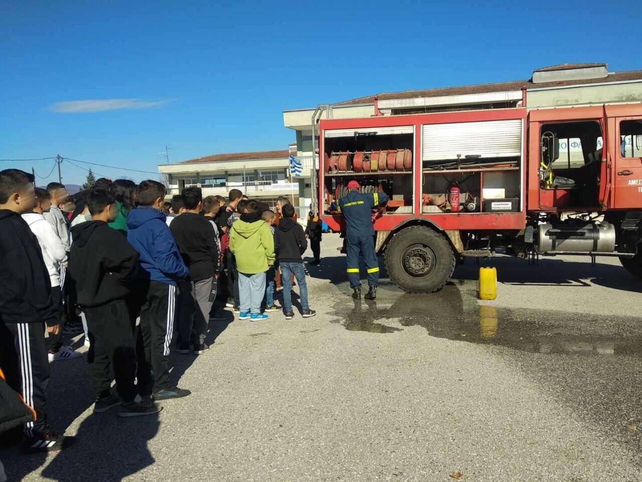 Η Διευθύντρια του Γυμνασίου Φαρκαδόνας κα Μαρία Τρίκα, οι εκπαιδευτικοί και οι μαθητές του σχολείου, ευχαριστούν θερμά τον Διοικητή της Πυροσβεστικής Υπηρεσίας Τρικάλων Αντιπύραρχο κ. Δημήτριο Παπαγεωργίου, καθώς και τον Προϊστάμενο Πολιτικής Προστασίας κ. Φωλίνα Στέφανο για τις εξαιρετικές εισηγήσεις τους σε θέματα που αφορούν την αντιμετώπιση έκτακτων αναγκών, την Πολιτική Προστασία και την Πυρασφάλεια Σχολικών Μονάδων. Θερμά ευχαριστώ αξίζουν επίσης και στους Πυρονόμο Μπαλτόπουλο Βασίλειο, Πυρονόμο Παππά Γεώργιο και τον Πυροσβέστη Ξυτσά Χρήστο για την πρακτική επίδειξη του Πυροσβεστικού Οχήματος.