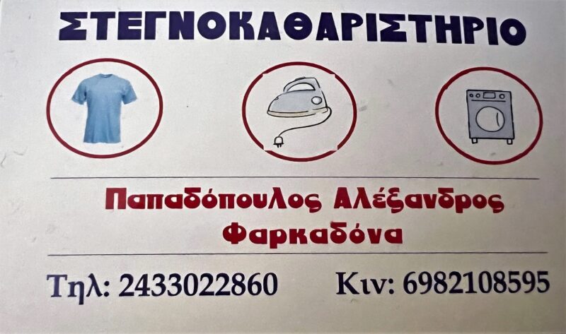 Άμεση καθαριότητα και εξυπηρέτηση από το στεγνοκαθαριστήριο του Αλέξανδρου Παπαδόπουλου στη Φαρκαδόνα