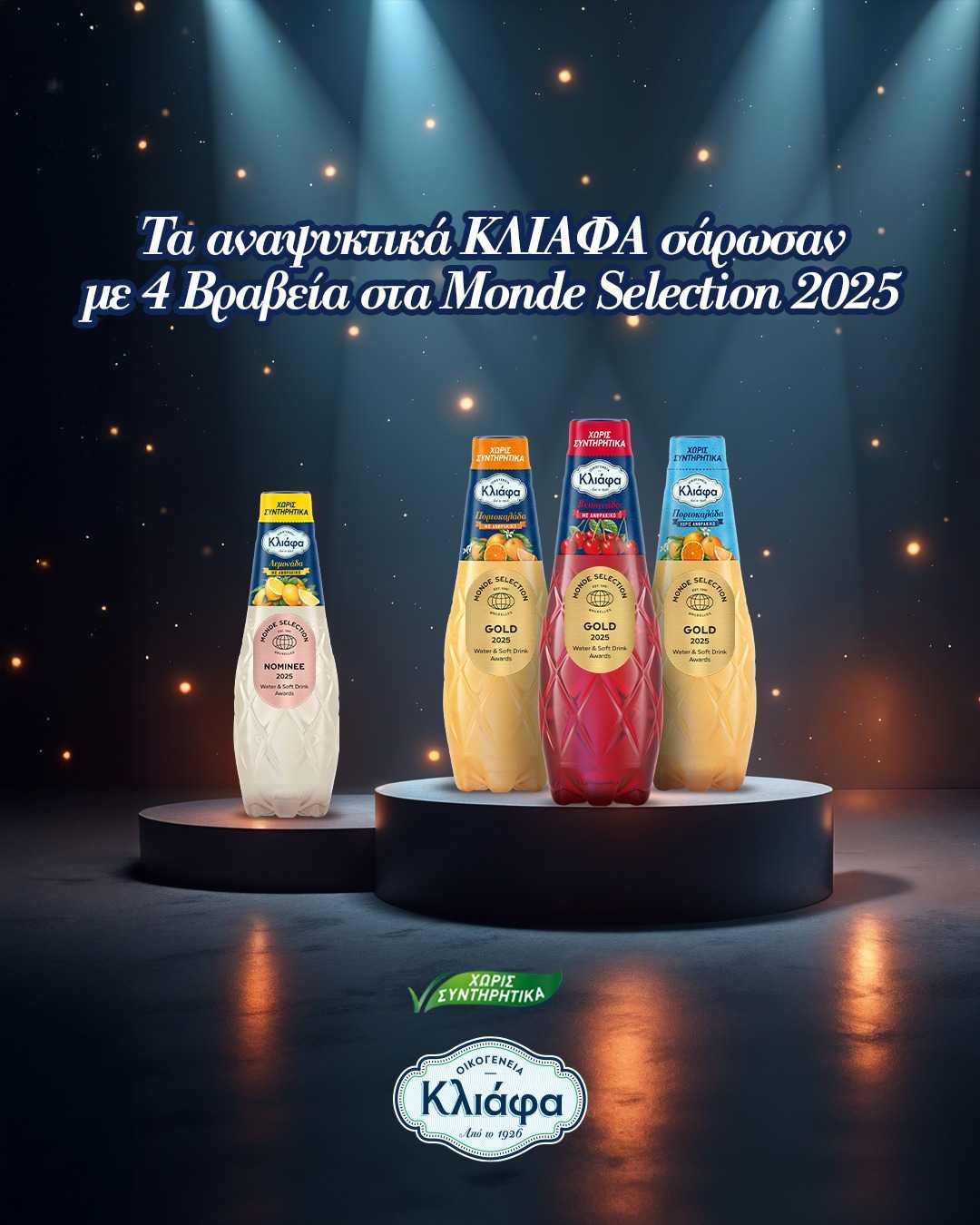 Τα αναψυκτικά ΚΛΙΑΦΑ σάρωσαν με 4 Βραβεία στα MondeSelection 2025
