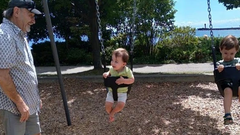 O σύζυγός της με τα δύο παιδιά στις κούνιες