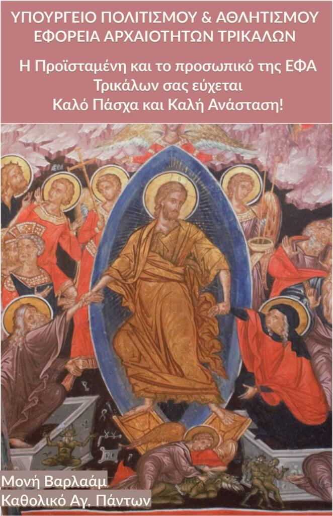 Η συντοπίτισσα και προϊσταμένη της Εφορίας Αρχαιοτήτων εύχεται σ’ όλο το κόσμο, Καλό Πάσχα και Καλή Ανάσταση με υγεία, δύναμη και ελπίδα.