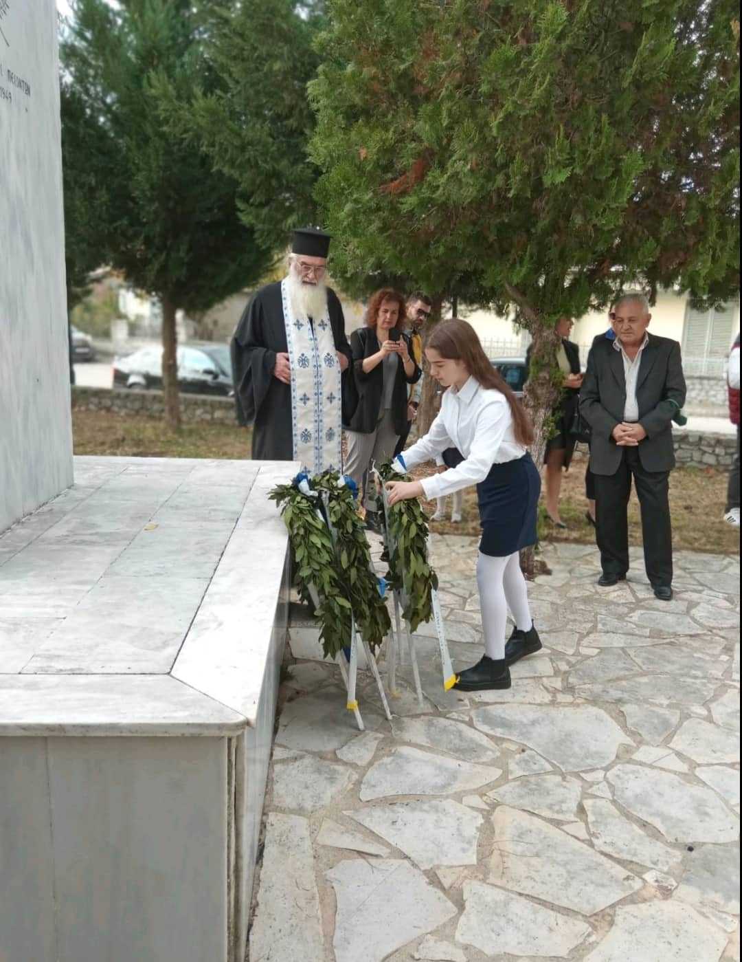 Λίγο αργότερα ακολούθησε η επιμνημόσυνη δέηση στο Ηρώο της κοινότητας και η κατάθεση στεφάνων από τους φορείς.