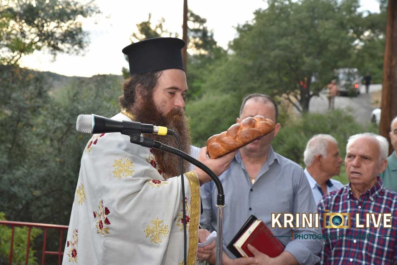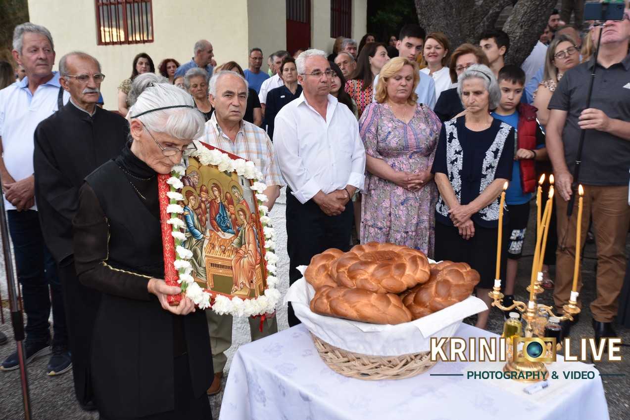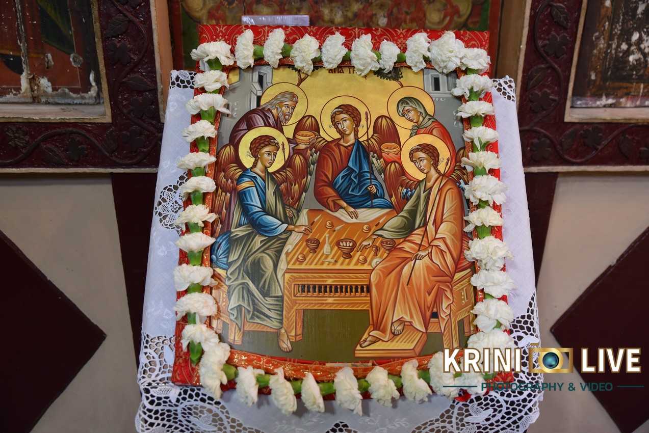 Όπως κατέγραψε αποκλειστικά η «Krini Live», ο φακός της οποίας υπήρξε παρών στις θρησκευτικές και πολιτιστικές εκδηλώσεις, η έναρξη έγινε το απόγευμα της Κυριακής της Πεντηκοστής με την τέλεση του Πανηγυρικού Εσπερινού. Πλήθος κόσμου από νωρίς το απόγευμα έσπευσε στην εκκλησία για να παραστεί στις θρησκευτικές εκδηλώσεις και στην συνέχεια να μεταφερθεί στην κεντρική πλατεία για να συμμετάσχει στο καλοκαιρινό πανηγύρι της κοινότητας. Ένα πανηγύρι που χρόνια τώρα κεντρίζει την προσοχή εκατοντάδες κόσμου, από το Γριζάνο και τα γύρο χωριά των δημοτικών ενοτήτων Φαρκαδόνας και Οιχαλίας.