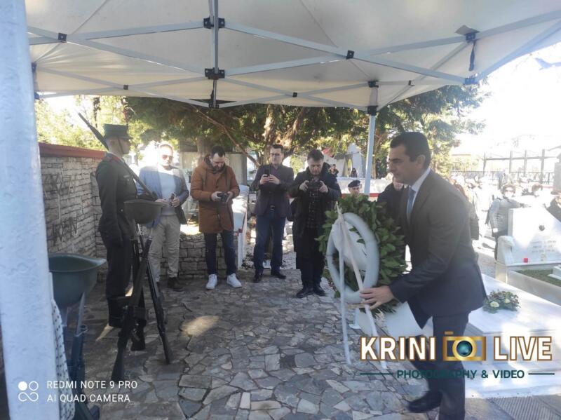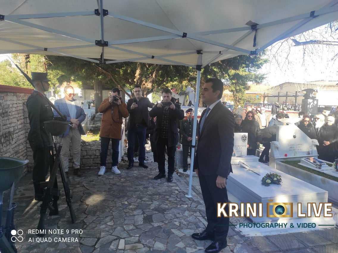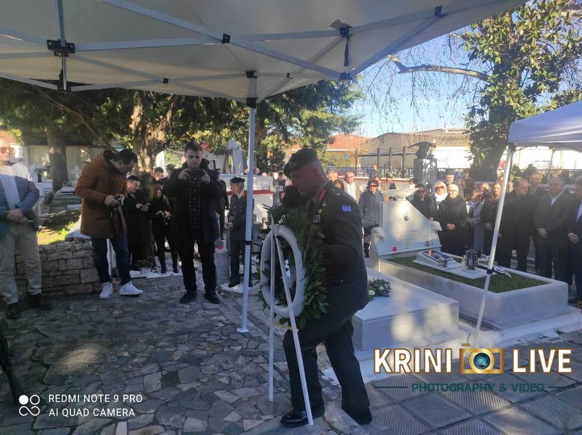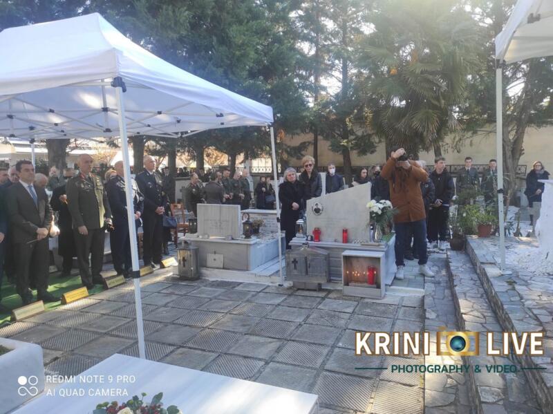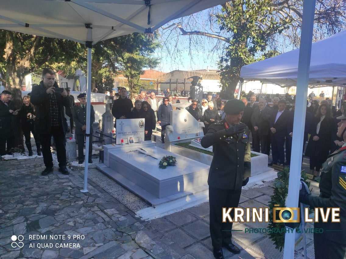 Η τελετή στο Στρατιωτικό Νεκροταφείο τα είχε όλα. Ένα τυπικό, αλλά ουσιαστικό τελετουργικό, πυροβολισμούς, απόδοση τιμών και φυσικά την παρουσία σύσσωμης της πολιτικής, τοπικής και στρατιωτικής ηγεσίας, αλλά κυρίως την συμμετοχή και την παρουσία της κοινωνίας που αποδεικνύει ότι Στρατός και λαός πορεύονται μαζί. Την επιμνημόσυνη δέηση τέλεσε ο Πρωτοσύγκελος της Ιεράς Μητρόπολης Τρίκκης, Γαρδικίου και Πύλης, Αλέξιος.