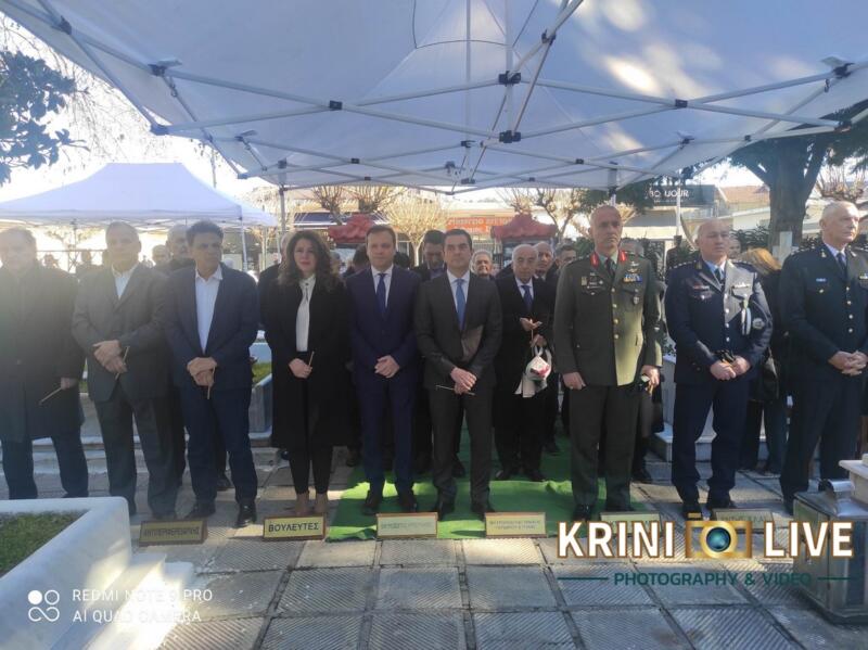 Η τελετή ολοκληρώθηκε με κατάθεση στεφάνων από την Πολιτική και Στρατιωτική ηγεσία του νομού καθώς επίσης και από εκπροσώπους φορέων του νομού.