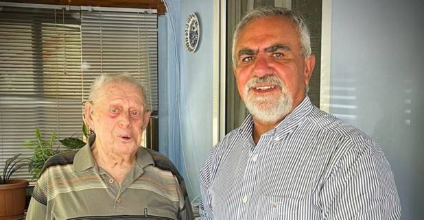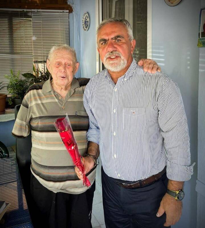 Ο Γενικός Διευθυντής της ΕΔΑ ΘΕΣΣ με τον αγωνιστή του Β΄ Παγκοσμίου Πολέμου, Αθανάσιο Ριζάκη