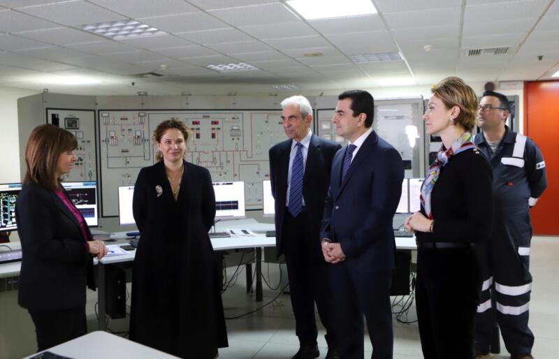 Στη συνέχεια της επίσκεψης, ο Τρικαλινός Υπουργός και η κ. Galli ξενάγησαν την Πρόεδρο της Δημοκρατίας, Κατερίνα Σακελλαροπούλου στις εγκαταστάσεις του Σταθμού στη Ρεβυθούσα, ενημερώνοντάς την για τη νέα πλωτή δεξαμενή που εγκαταστάθηκε σε χρόνο ρεκόρ, με αποτέλεσμα τον διπλασιασμό της αποθηκευτικής ικανότητας του Σταθμού και την ενίσχυση της επάρκειας εφοδιασμού της χώρας σε φυσικό αέριο.