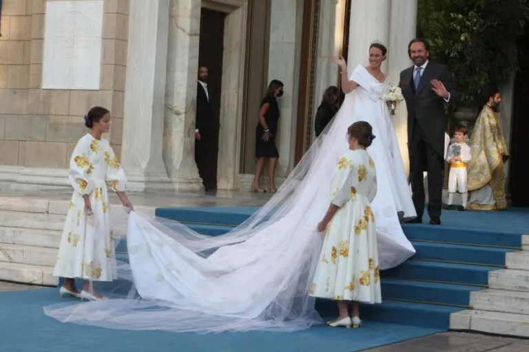 Εντυπώσεις πέρα από τις υπέροχες τουαλέτες υψηλών καλεσμένων από Ελλάδα και εξωτερικό, έχουν κλέψει μέχρι ώρας και τα τέσσερα παρανυφάκια, δύο κορίτσια και δύο αγόρια, ντυμένα στα λευκά. με χρυσές κορδέλες, περασμένες στη μέση τους και μωβ με λευκά λουλούδια στα χέρια τους.