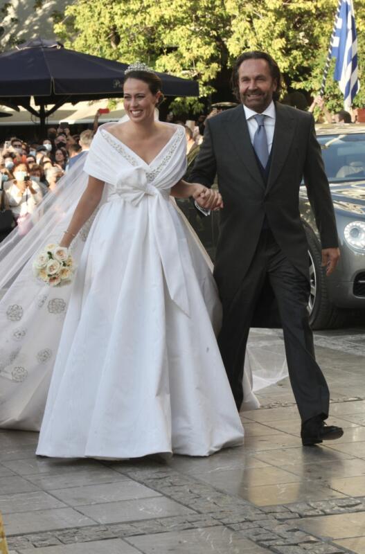 Στις 17:25 άνοιξαν οι κεντρικές πόρτες της Μητρόπολης Αθηνών για να αποδεχθούν τη νύφη, Νina Flohr, με ένα όμορφο νυφικό, με κομψό ντεκολτέ, ενώ ξεχωρίζει το εντυπωσιακό σινιόν χτένισμα όπως άλλωστε και η τιάρα.