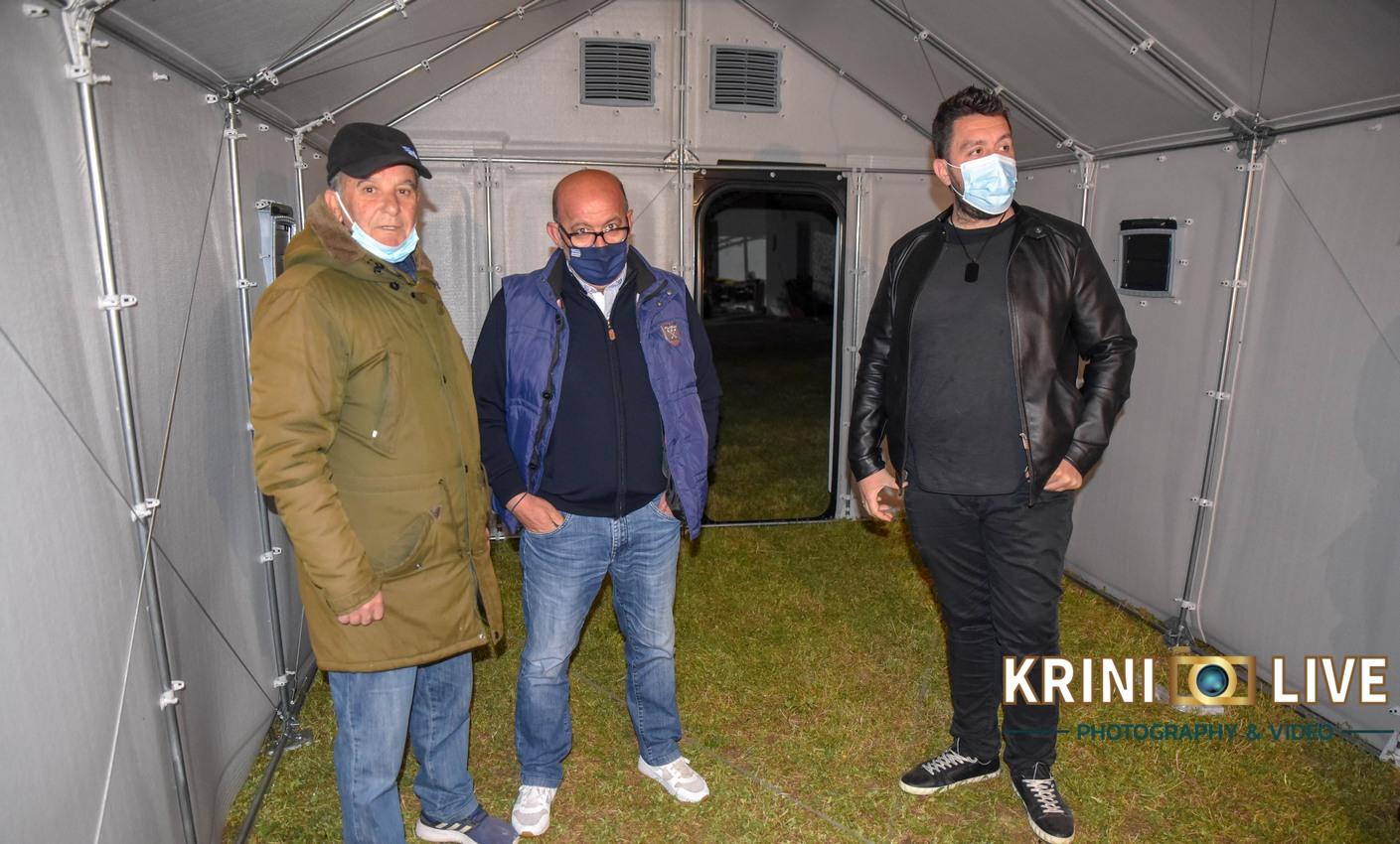 Το αίτημα βρήκε αποδέκτες την Περιφέρεια Θεσσαλίας και την Περιφερειακή Ενότητα Τρικάλων κι έτσι το απόγευμα της Πέμπτης ξεκίνησαν οι προσπάθειες και λίγες ώρες αργότερα ολοκλήρωθηκαν με την εγκατάσταση της αυτοσχέδιας εκκλησίας στον προαύλιο χώρο του ναού.