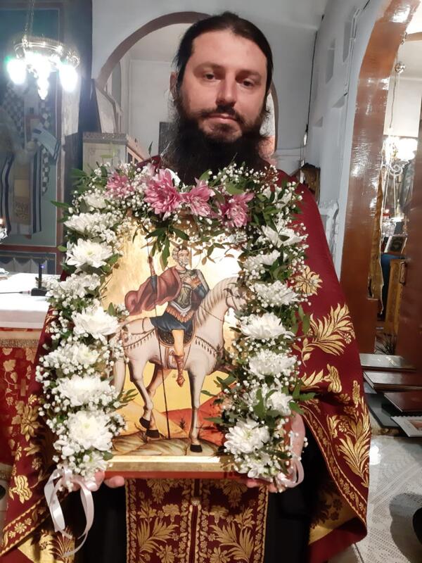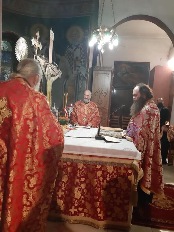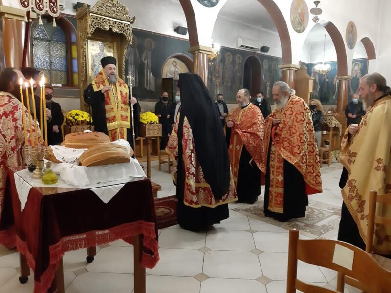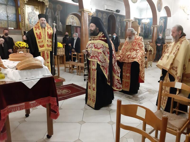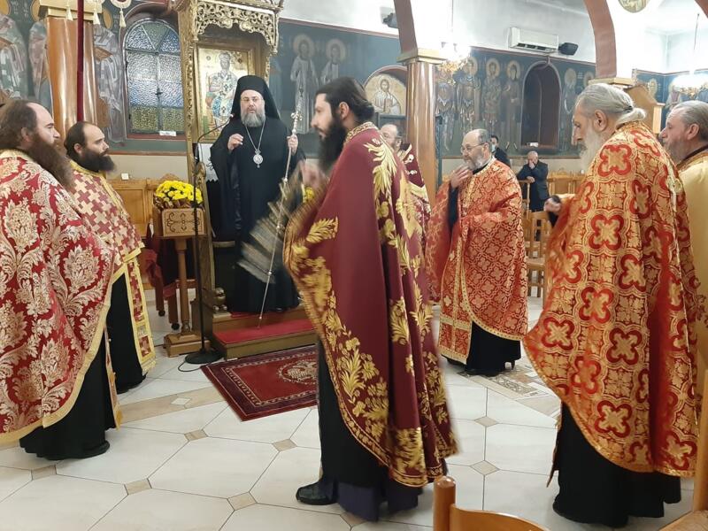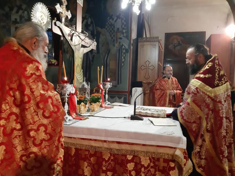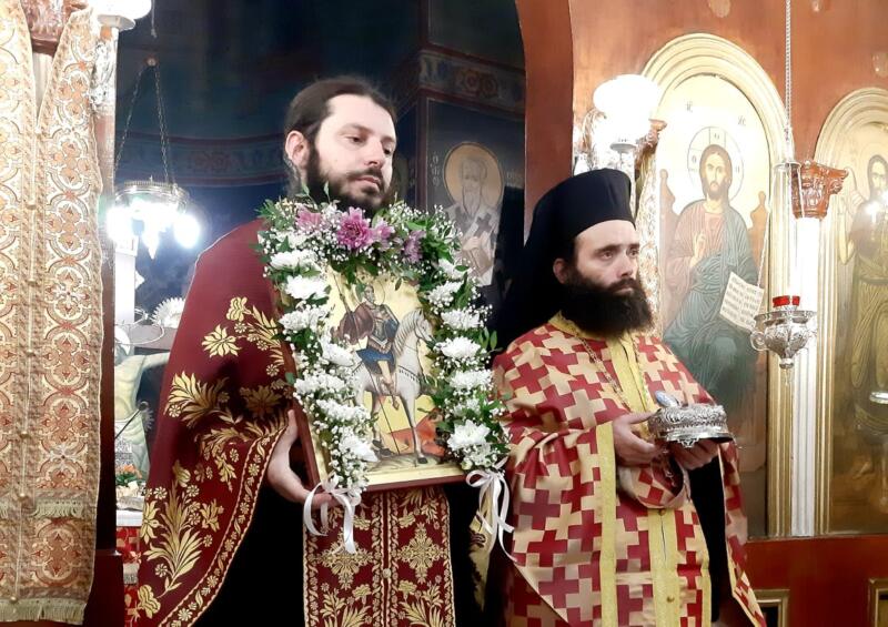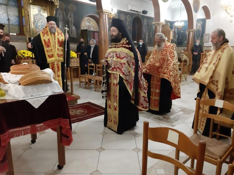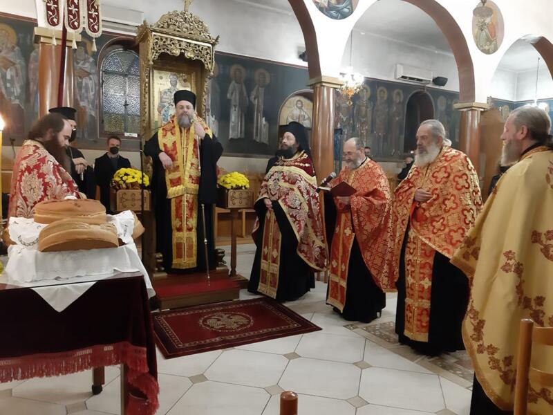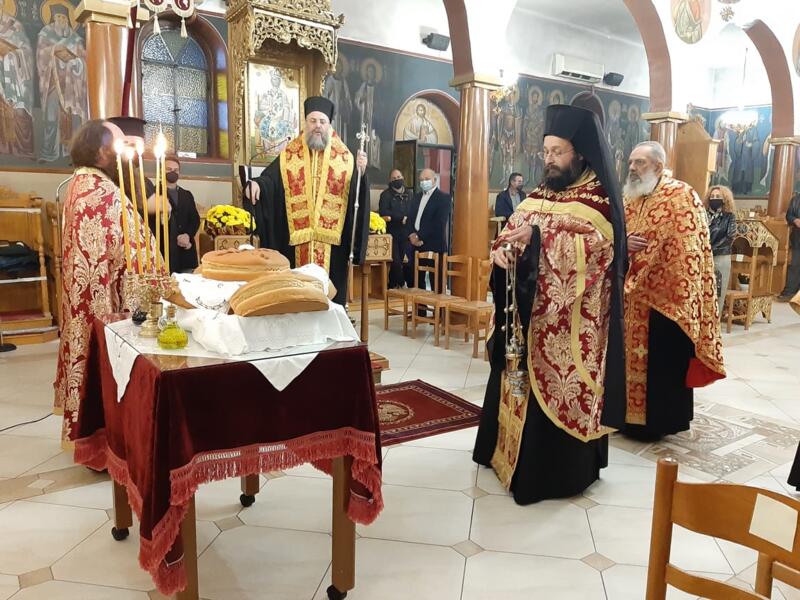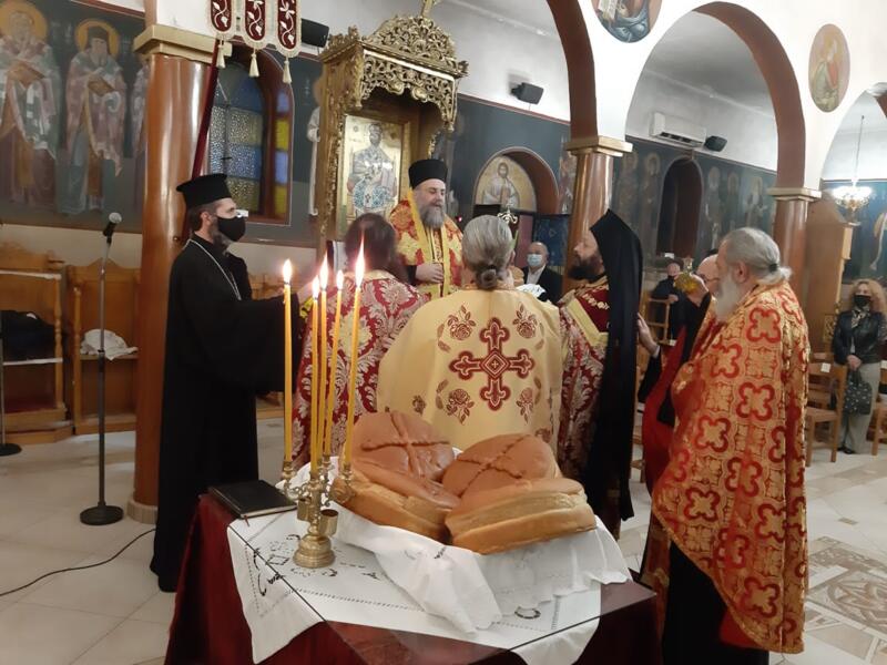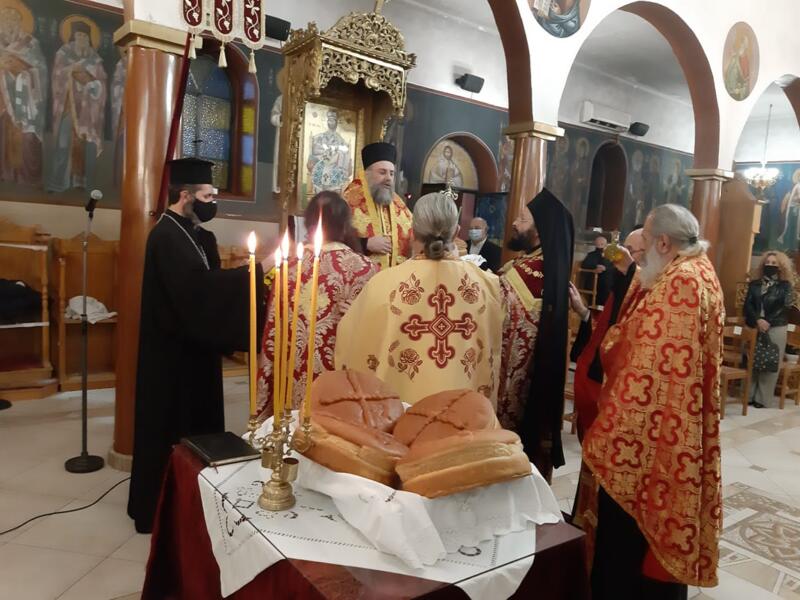 Οι εορταστικές εκδηλώσεις ξεκίνησαν σήμερα τετάρτη απόγευμα με την τέλεση του Αρχιερατικού Εσπερινού, μετ’ αρτοκλασίας και Θείου Κηρύγματος από τον κ. κ. Χρυσόστομο. Ο σεπτός ποιμενάρχης μας, κατά το Θείο λόγο αναφέρθηκε στο βίο του Αγίου, παροτρύνοντας τους πιστούς να τον επικαλούνται στις προσευχές για βοήθεια τόσο των ιδίων, όσο και των στενών τους προσώπων που βρίσκονται μακριά τους στο εξωτερικό για εργασία.