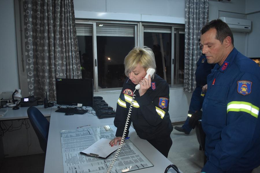 Ήταν περίπου μία το βράδυ όταν έγινε κλήση στο τηλεφωνικό κέντρο που βρίσκεται στον δεύτερο όροφο, για τροχαίο στην οδό Βόλου με εγκλωβισμό. Ο πυροσβέστης που βρίσκεται στην συγκεκριμένη θέση, καταγράφει το περιστατικό, βρίσκεται αν χρειαστεί σε συνεννόηση με ΕΚΑΒ και αστυνομία και δίνεται σήμα στο ισόγειο στον εκεί υπεύθυνο στο κέντρο επιχειρήσεων, ο οποίος κρούει το κουδούνι του συναγερμού.