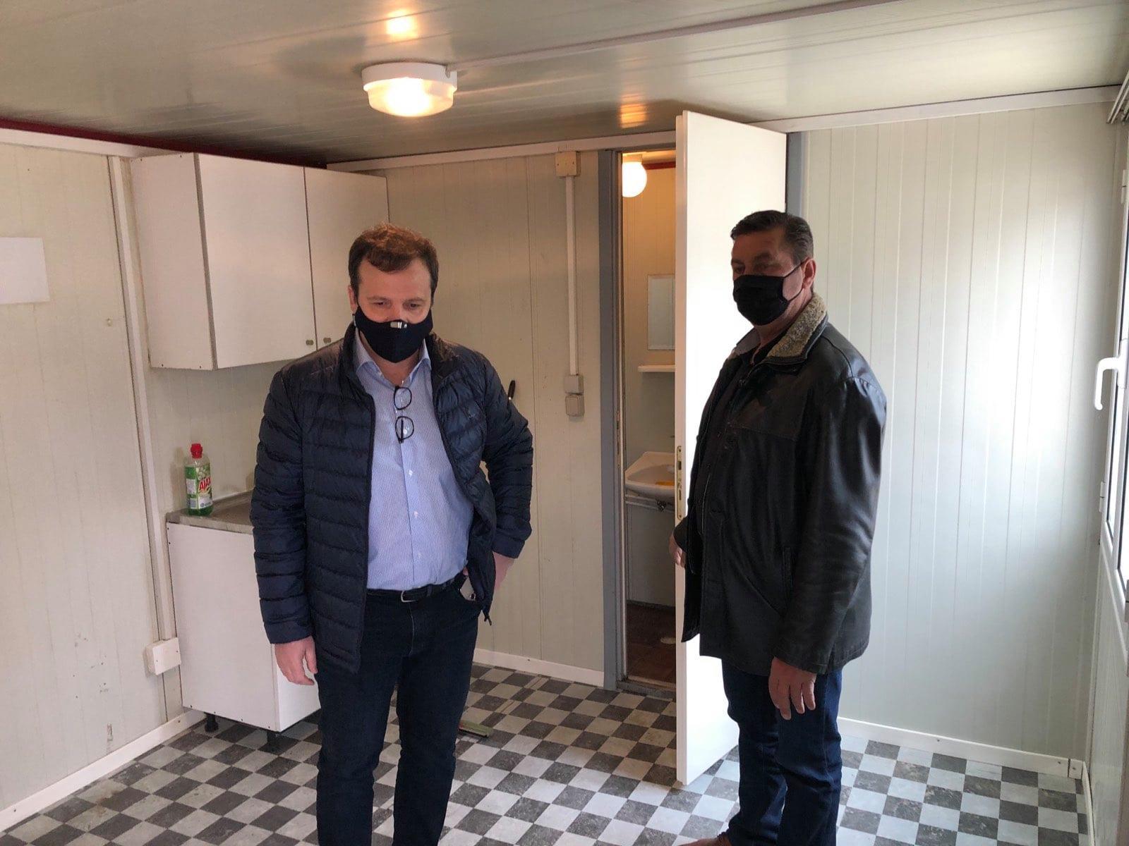 Ο κ. Λιούτας επισκέφθηκε τους οικίσκους που εγκαταστάθηκαν και συνομίλησε με τους κατοίκους που από σήμερα θα αρχίσουν να στεγάζονται εκεί.