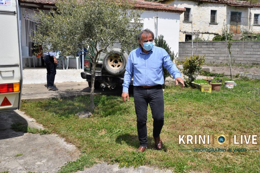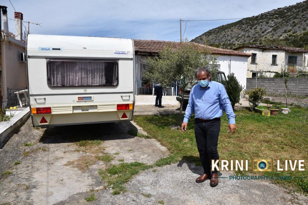 Παρών στην έλευση από πλευράς Περιφέρειας, ο θεματικός αντιπεριφερειάρχης Αγροτικής Ανάπτυξη, Ντίνος Μπάρδας, ο οποίος συνέδραμε κι αυτός από την πλευρά του για την μεταφορά του τροχόσπιτου στο οικόπεδο της οικίας των σεισμοπαθών.