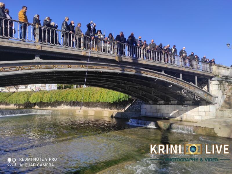 Η κατάδυση του Σταυρού έγινε από την ανατολική -και όχι τη δυτική, όπως συνηθίζουν οι του Νέου Ημερολογίου- πλευρά της γέφυρας από το Μητροπολίτη Τρίκκης και Σταγών των Γνησίων Ορθοδόξων Χριστιανών κ.κ. Κοσμά.