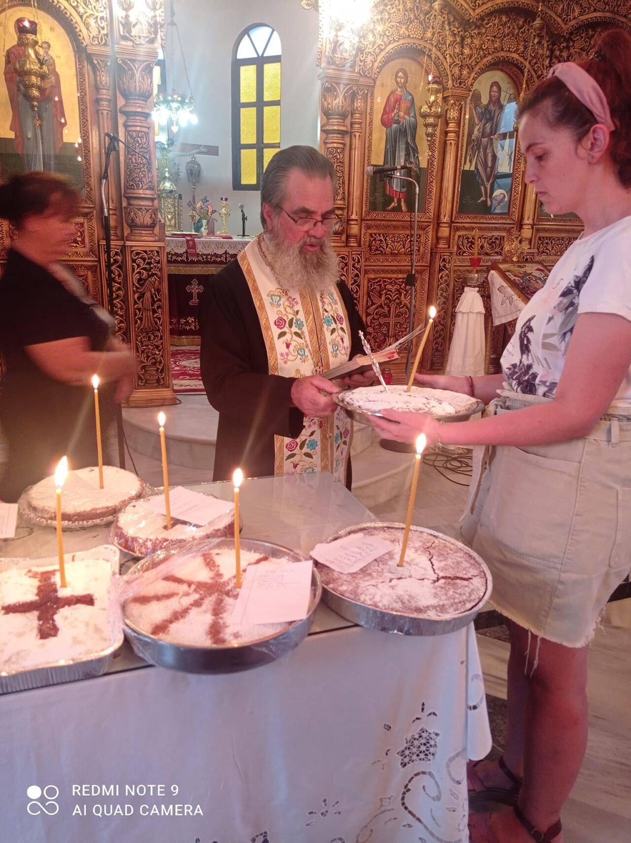Πιστοί έσπευσαν να τηρήσουν το έθιμο και να προσφέρουν στην μνήμη του Αγίου, την Φανουρόπιτα, η οποία σύμφωνα με την παράδοση προσφέρεται προς συγχώρηση των αμαρτιών της μητέρας του Αγίου.