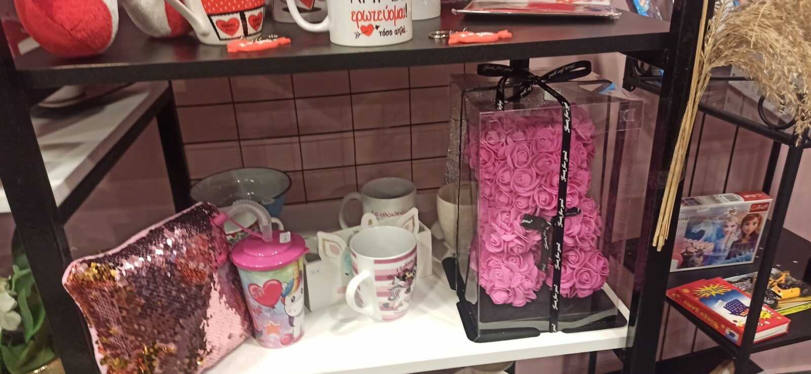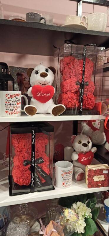 Στο κατάστημα μπορείτε να επιλέξετε μια μεγάλη ποικιλία δώρων, λουλούδια, λουλούδια forever, συνθέσεις λουλουδιών, ατσάλινα και 925°ασημένια κοσμήματα, Rose Bear, Λούτρινα αρκουδάκια, μπαλόνια σε σχήμα καρδιάς, κούπες, γυναικείες τσάντες, πορτοφόλια, ρολόγια και αλλά είδη δώρων για τα αγαπημένα μας πρόσωπα.
