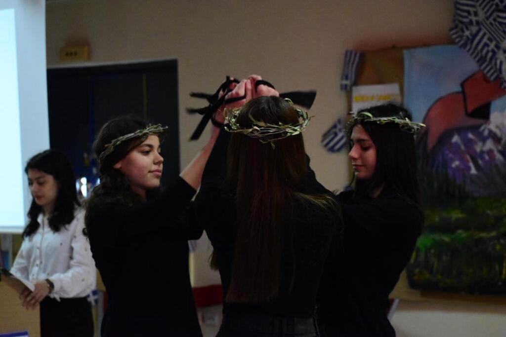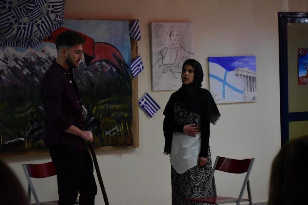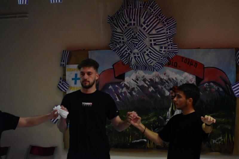Τηρώντας τα υγειονομικά πρωτόκολλα παρουσίασαν αποσπάσματα από το χρονικό της σκλαβιάς από το εάλω η πόλις το 1453 έως το λευτεριά ή θάνατος το 1821 και την έναρξη της επανάστασης. Από τον θούριο του Ρήγα έως το νεοσύστατο ελληνικό κράτος και τη δολοφονία του Καποδίστρια, οι μαθητές διέτρεξαν νοερά τον λογισμό και το θάρρος των πρωταγωνιστών.