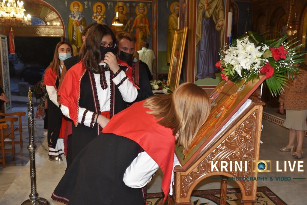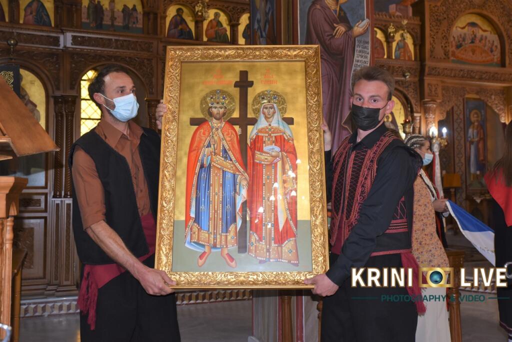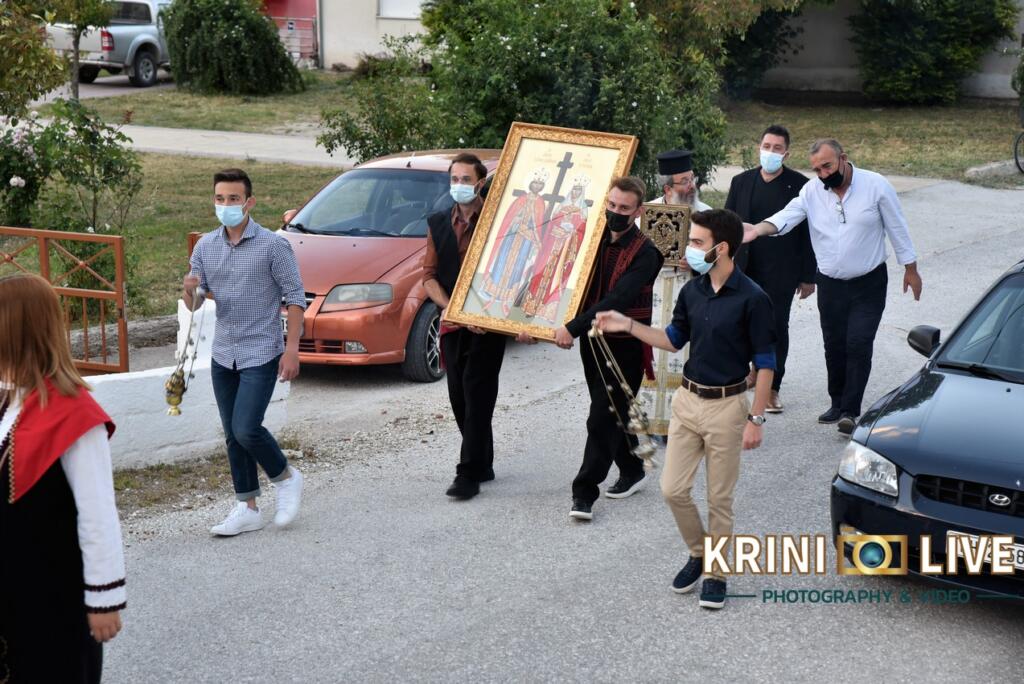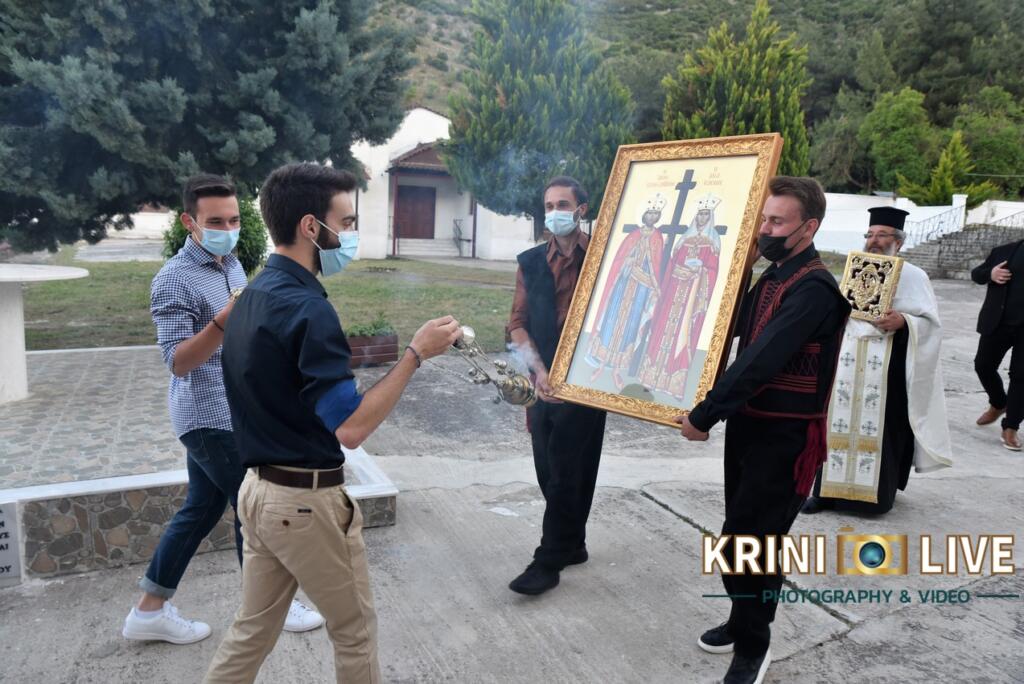 Σύμφωνα με την «ΚΡΗΝΗ LIVE» οι εορταστικές εκδηλώσεις ξεκίνησαν το απόγευμα της Πέμπτης με την τέλεση του πανηγυρικού εσπερινού μετ΄ αρτοκλασίας και Θείου Κηρύγματος. Λίγο αργότερα πραγματοποιήθηκε η περιφορά της Αγίας Εικόνας Κωνσταντίνου και Ελένης από νέους του χωριού.