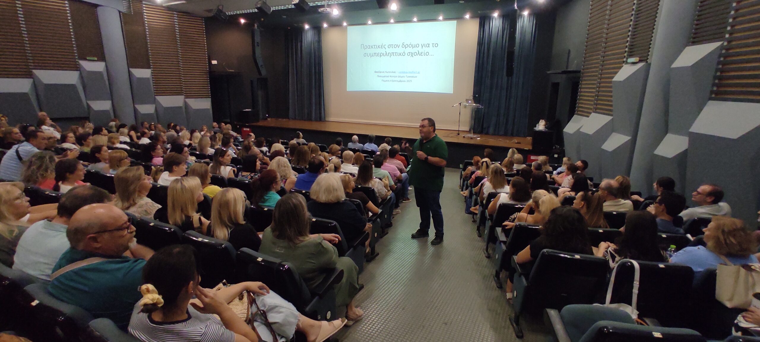 Με μεγάλη επιτυχία και συμμετοχή πραγματοποιήθηκε σήμερα, 4 Σεπτεμβρίου, στο Πνευματικό Κέντρο Δήμου Τρικάλων, η επιμορφωτική ημερίδα που διοργάνωσαν ο Επόπτης Ποιότητας και οι Σύμβουλοι Εκπαίδευσης της ΔΙ.Π.Ε. Τρικάλων, με στόχο την υποστήριξη και ενδυνάμωση του εκπαιδευτικού έργου.