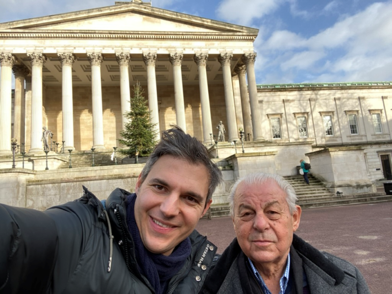 Με τον πατέρα του Ευάγγελο στο University College London.