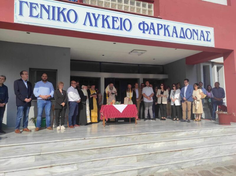Ο Αγιασμός στην Φαρκαδόνα σε επίπεδο δευτεροβάθμιας εκπαίδευσης τελέστηκε στο Γενικό Λύκειο Φαρκαδόνας, όπου θα συστεγαστούν μαθητές του γυμνασίου Φαρκαδόνας, του ΓΕΛ και του ΕΠΑ.Λ.
