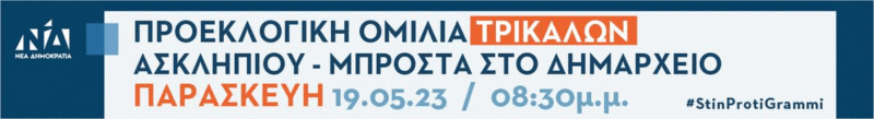 Καλεί όλους τους Τρικαλινούς να συμμετέχουν στην εκδήλωση, στέλνοντας από κοινού ένα δυνατό μήνυμα νίκης για τη Ν.Δ. και τον Κυριάκο Μητσοτάκη! Για να μπορέσει να πάει ακόμα πιο μπροστά την Ελλάδα και τα Τρίκαλα!